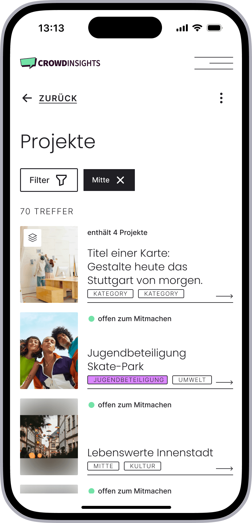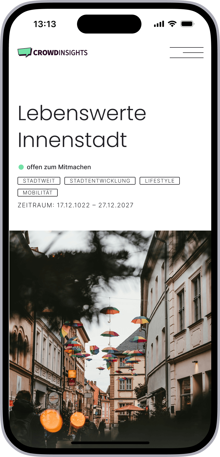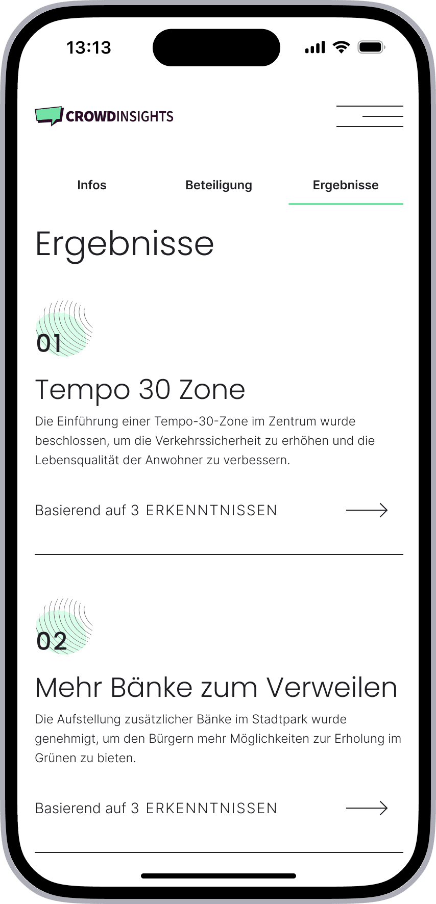 CrowdInsights is a scalable participation platform enabling municipalities to manage complex civic engagement. It is used to involve citizens in urban planning processes, idea submissions and public discussions.