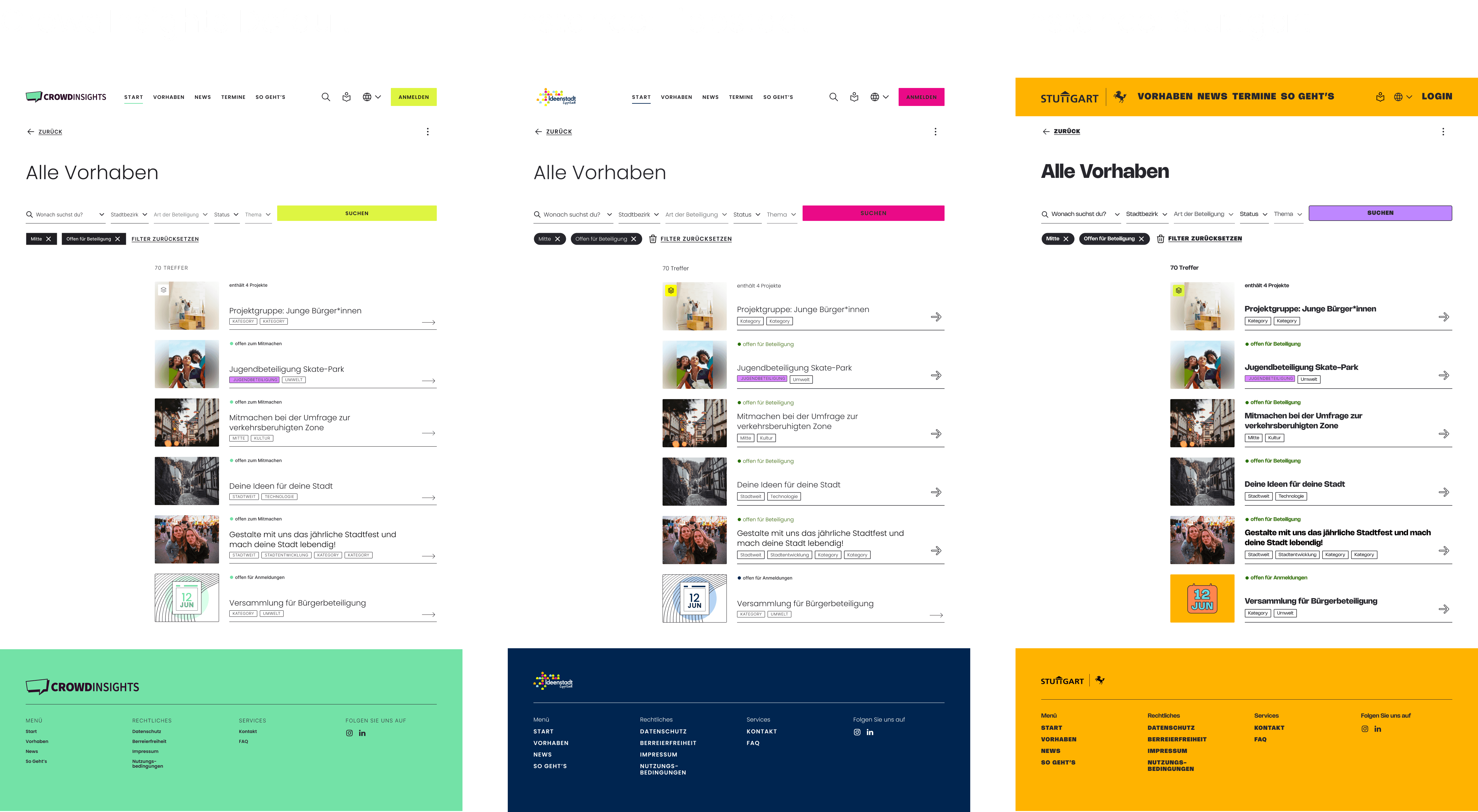 The system was first developed for the City of Stuttgart, which served as the primary design instance. This work is documented separately as the Stuttgart design system. The CrowdInsights default system builds on the same architecture, using Stuttgart as the foundational reference while establishing the neutral baseline from which other municipalities can derive their own instance.