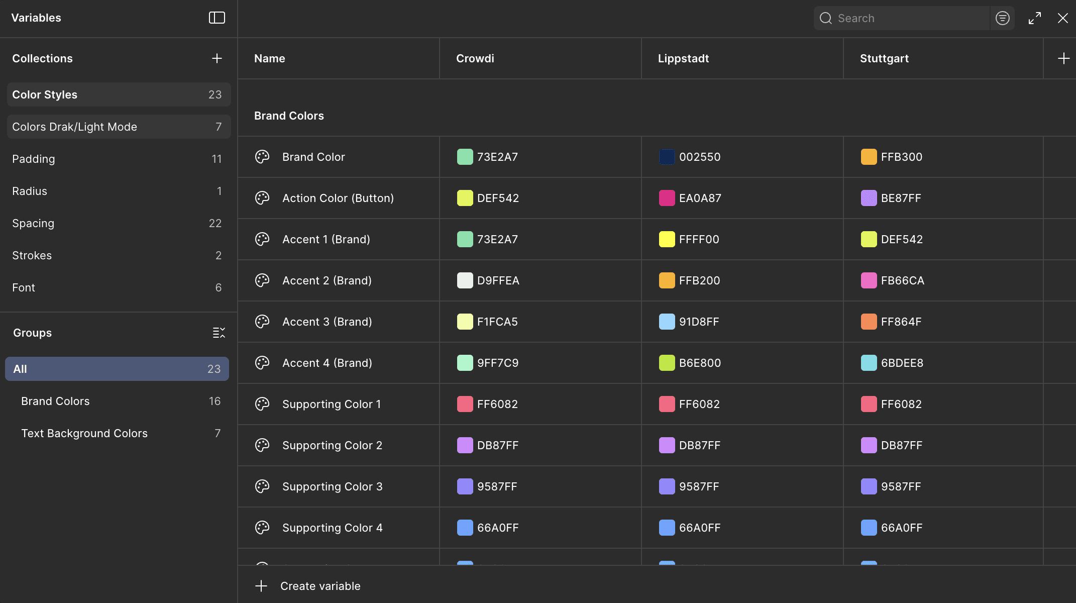 Solution: To support multiple municipalities with different branding requirements, the platform was built as a white-label system. In Figma, this is implemented through a token-based architecture with separate color modes per client instance. Switching between municipalities is a mode change. The components stay identical, only the token values change. Typography is managed through semantic tokens, so font changes can be made in one place and apply consistently across the entire system.