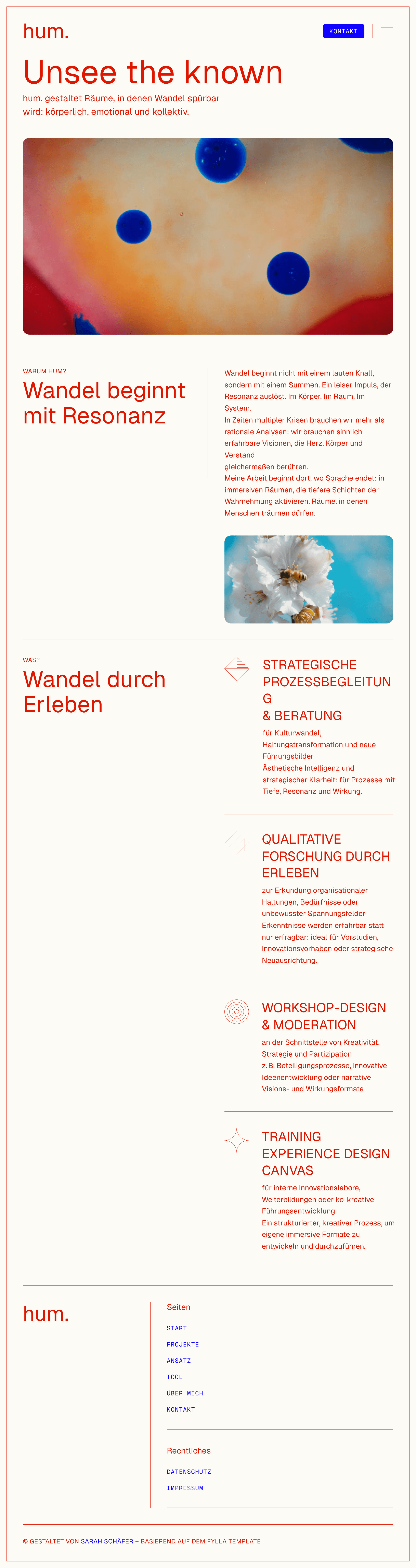 For hum., I developed the branding and website for a strategist and social anthropologist working at the intersection of art, systemic transformation and the public sector.