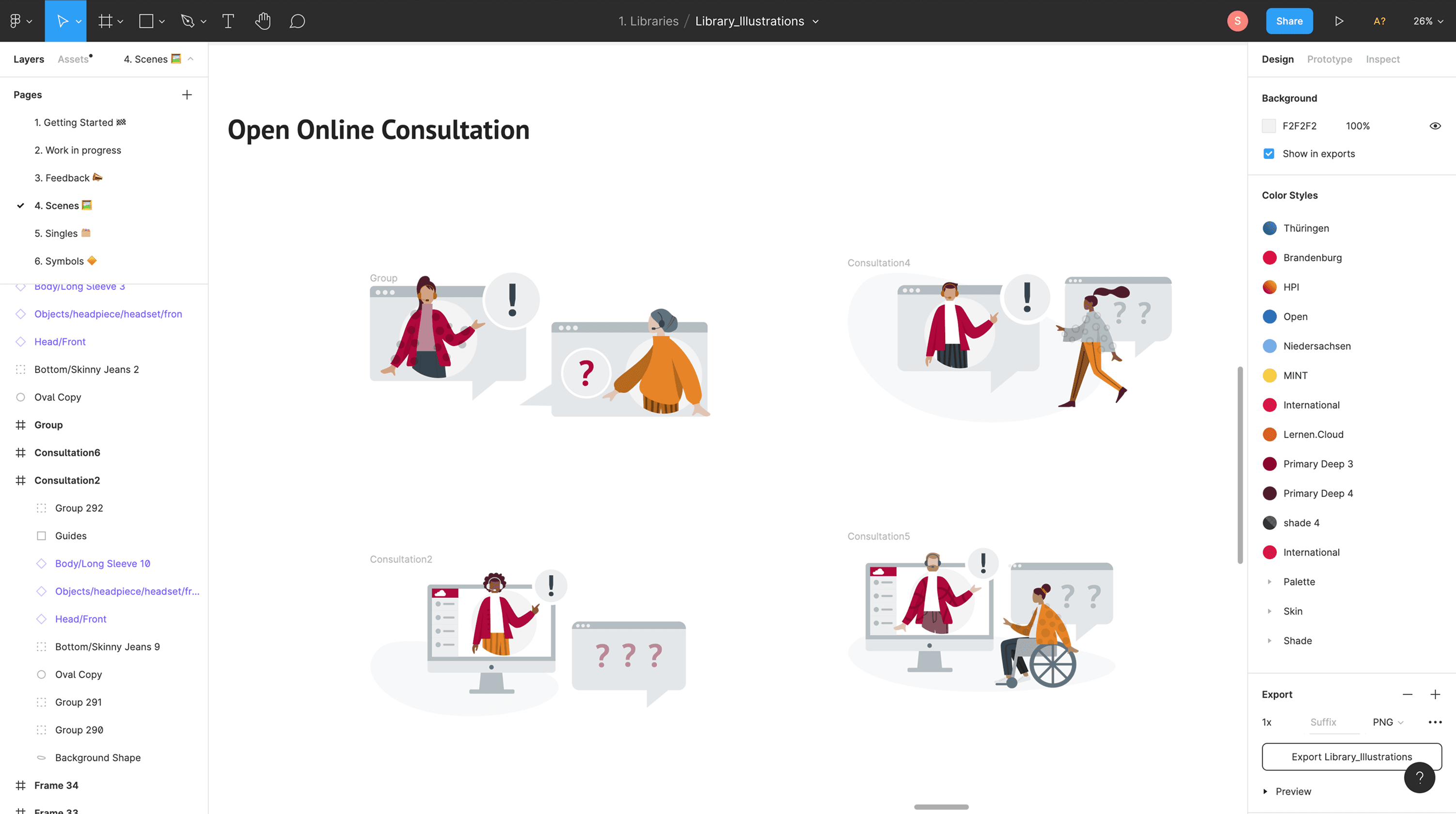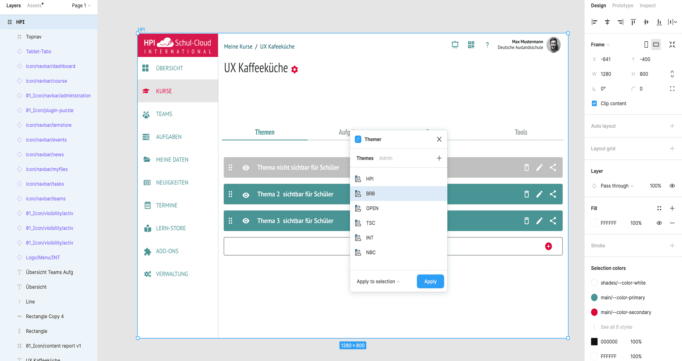 Built a library with a theming for each federal state including typography, colors, components, I used the Themer plugin to manage styles across federal state instances (before Figma Tokens existed)
